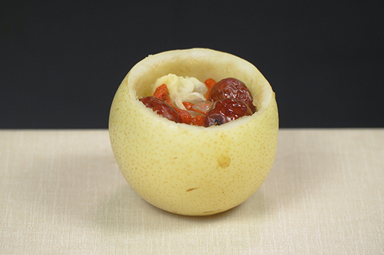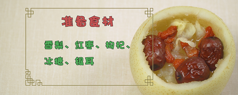 制作冰糖雪梨需要先把雪梨清洗干净,雪梨顶部切掉,挖空中间后,把银耳、红枣、枸杞、冰糖与适量清水放入里面,最后放入蒸锅内开盖蒸25~30分钟左右,即可做成一份美味可口的冰糖雪梨。