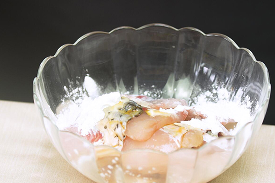 准备食材:草鱼片、鸡精、青菜、料酒、生姜粉、淀粉、姜、蒜、葱、干辣椒、豆瓣酱、香菜、花椒、白糖、色拉油、盐、酱油。