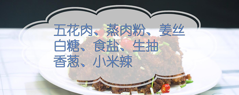 准备材料:五花肉、蒸肉粉、姜丝、白糖、食盐、生抽、香葱、小米辣。