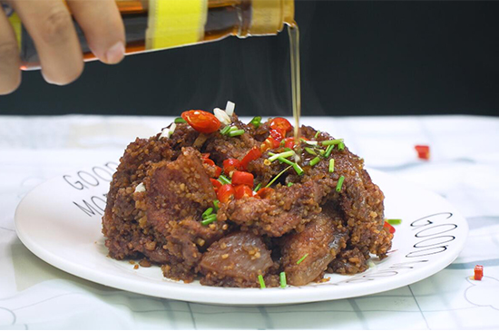 5、淋上少许香油便可以食用,美味的粉蒸肉便制作完成。