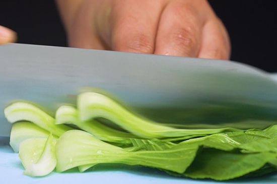 2、再将手工面放在烧开的锅中煮熟,将青菜和香菜,葱摘好洗净切好。