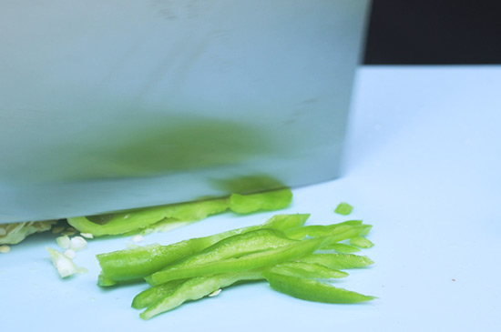 1、将土豆和青椒洗干净后,将其切成丝,再将姜、蒜切成末。