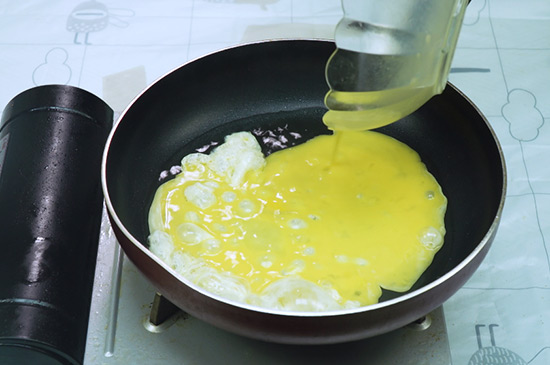 2、再在烧好的锅中放入适量的油,将鸡蛋倒入其中后,待两面都焦黄后装盘。