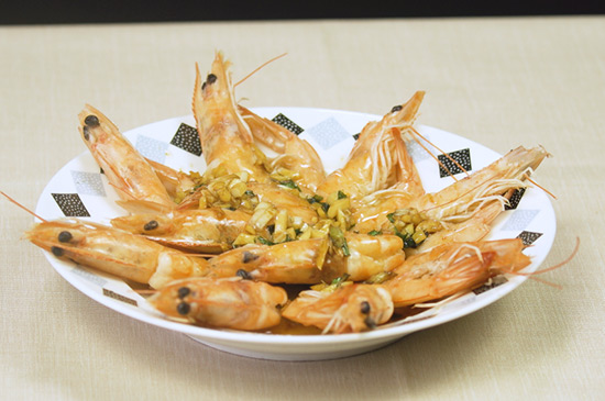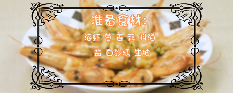 准备食材:海虾、葱、姜、蒜、料酒、盐、白砂糖、生抽