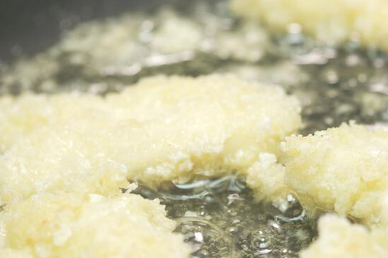 3、将腌好的鸡肉沾上面包糠,放在烧开的油锅中煎炸,待两面炸成金黄色就可以出锅。