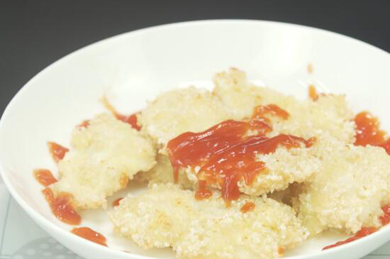 4、再根据自己的口味适当添加一些番茄酱就可以,这样香酥可口的鸡排就做好了。