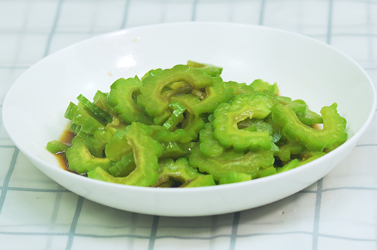 做凉拌苦瓜需要将苦瓜清洗干净,去除瓜瓤,切成片状。锅中烧水,水开后下苦瓜烫5秒后捞出放凉。碗中加入食盐、酱油。鸡精、香醋和香油搅拌均匀,淋在苦瓜上并拌匀,清凉解暑的凉拌苦瓜便制作完成。