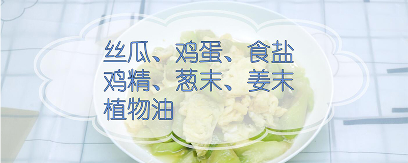 准备食材:丝瓜、鸡蛋、食盐、鸡精、葱末、姜末、植物油。