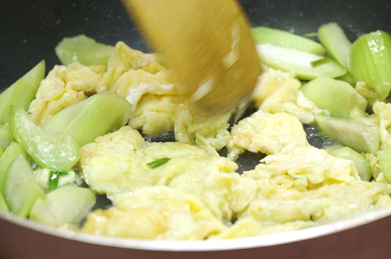 5、倒入炒好的鸡蛋,继续翻炒30秒,美味的丝瓜炒蛋便可以出锅。