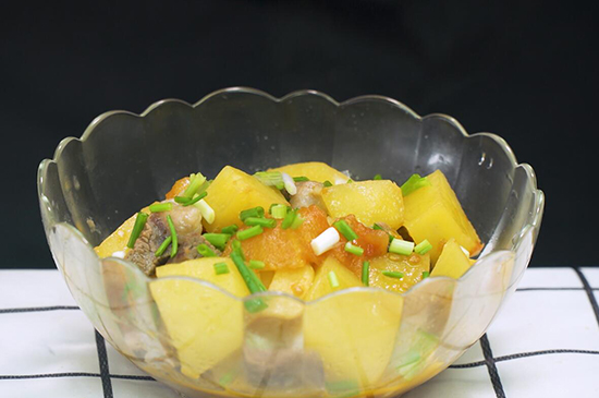 起锅烧油后放入姜片炒出香味,再把去皮切成块的番茄放入翻炒出番茄汁。再把焯水过的牛腩放入锅内,加入热水后翻炒均匀并盖上锅盖,锅内沸腾后加入生抽、盐和土豆,40分钟后开盖收汁,撒上葱花后即可做成美味的番茄牛腩。