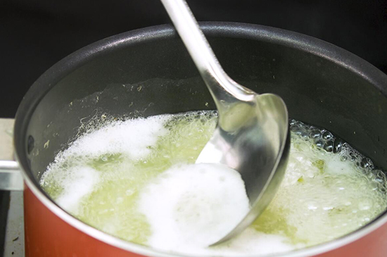 4、打开锅盖煮至粥水沸腾,把表面浮沫撇去后即可出锅,美味的绿豆粥也就制作好了。
