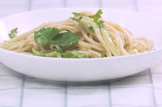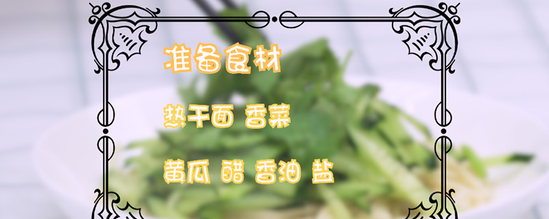准备食材:热干面、香菜、黄瓜、醋、香油、盐。