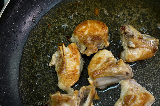 3、将腌制好的排骨下油锅中,中火慢炸5分钟时间,炸至变色捞出,等油烧热时大火,回锅再用大火炸3分钟,捞出沥油。