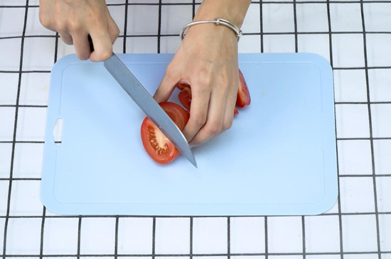 1、茄子、西红柿清洗干净后切成块状。