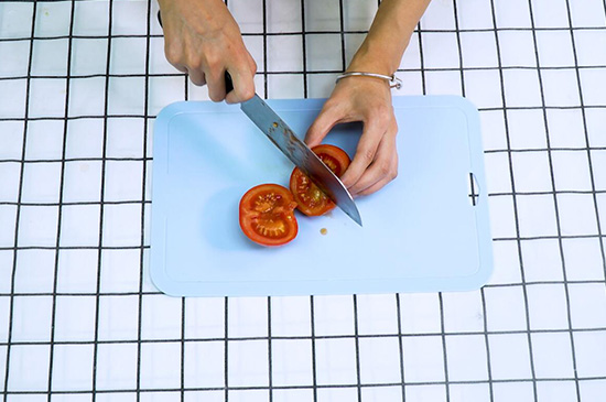 1、西红柿清洗干净后切成块状,鸡蛋打入碗中备用。