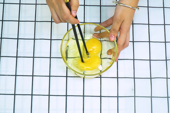 1、将鸡蛋打入碗中并用筷子将其打散。