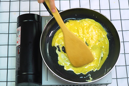 3、起锅烧油,放入蛋液翻炒2分钟。