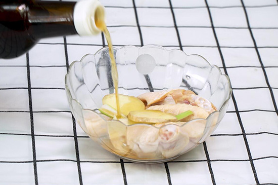 准备材料:鸡翅、可乐、葱段、料酒、老抽、食盐、食用油。