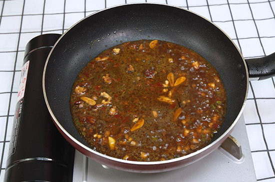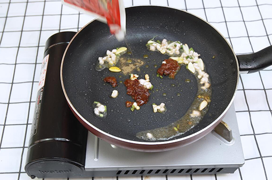 3、加入豆瓣酱、胡椒粉、老抽翻炒均匀。