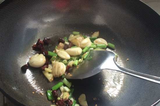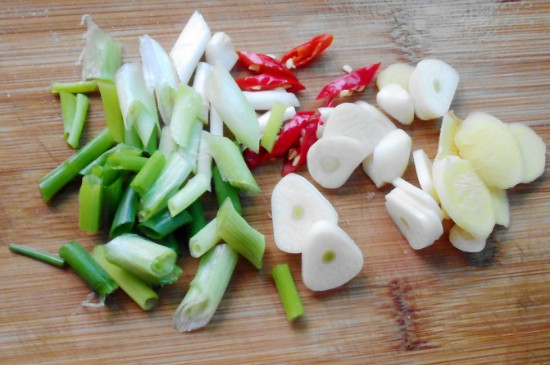 3、洗净把蒜、辣椒、芹菜等辅材后切好放在一旁备用。
