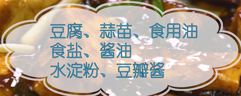 准备食材:豆腐、蒜苗、食用油、食盐、酱油、水淀粉、豆瓣酱。