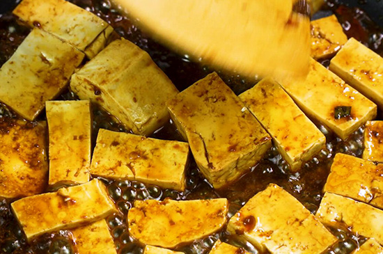 5、最后倒入水淀粉烧几分钟,香喷喷的红烧豆腐就出锅了。