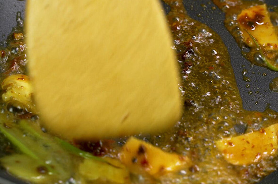 2、将切半的螃蟹蘸取淀粉,放入锅中油炸至金黄色。