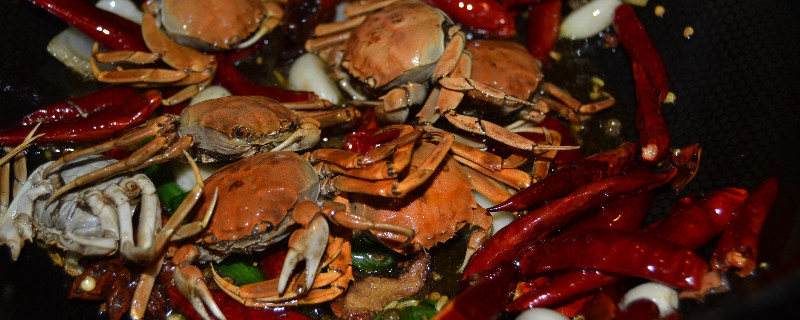 爆炒香辣蟹制作之前需要将螃蟹洗净,去除腹甲,从中间切开。锅中烧多点油,加入干辣椒花椒和葱姜蒜爆香,将螃蟹放进去爆炒,变色后加水和调味料闷煮10分钟,汤汁收干后便可以出锅食用。爆炒香辣蟹口感香辣,十分美味。