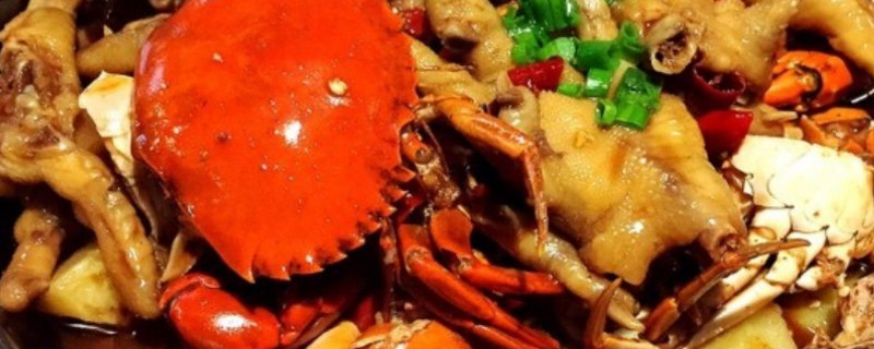 蟹肉煲鸡爪制作前需要将螃蟹清洗干净,去除腮和嘴,对半切开,将切面粘上面粉,放在油锅中炸制金黄酥脆。将鸡爪在油锅中翻炒,加入调味料炖煮20分钟后将螃蟹放入锅中继续炖煮,待汤汁收紧、蟹肉变软便可以出锅享用。