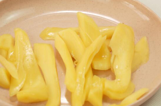 菠萝蜜食用时可用淡盐水浸泡后取出,用刀切一刀,去除菠萝蜜的果核,留下的果肉可直接食用,菠萝蜜果肉还可切成丝状,放入盘中慢慢享用,另外菠萝蜜的果核煮熟也可食用,或用来煲汤,饮用时鲜美可口。