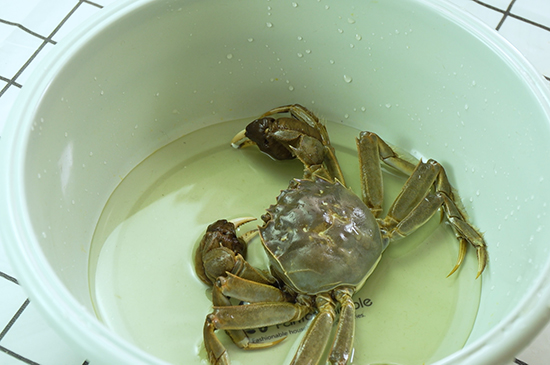 1、将螃蟹用清水冲洗干净,用绳子捆绑起来。