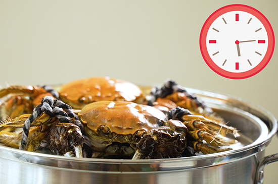 蒸螃蟹时需先用清水清洗干净,用绳子捆绑起来,在锅中注入清水,在蒸篦上撒点儿姜片、花椒,将螃蟹放入,开后继续蒸12~15分钟取出,在碗中加入生姜丝、陈醋、酱油以及香麻油搅拌均匀后便能蘸料食用。
