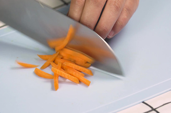 准备里脊肉、胡萝卜、青椒等食材,把肉切成丝,放入葱、姜等调料,再将胡萝卜、青椒切成丝,木耳切碎。锅中加油,放入葱、姜以及腌好的肉丝,待肉丝变色后加入胡萝卜、木耳、青椒。最后放入醋、食盐、味精翻炒出锅。