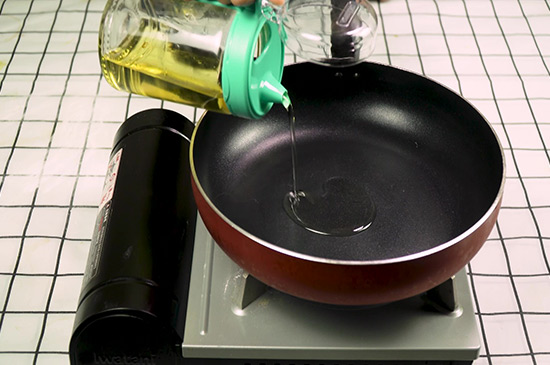 4、在锅中加入油,油热后放入切好的葱、姜、蒜,再加入腌好的肉丝。