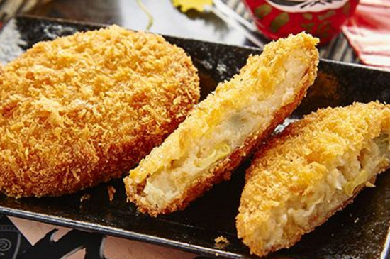 土豆去皮切成片状,放入蒸锅中蒸10分钟时间后压成泥状,将炒好的洋葱培根放入土豆泥中搅拌,加入少许的食盐,将鸡蛋打成鸡蛋液,倒入平盘,将搅拌好的土豆泥按成圆平状,沾蛋液后裹上面包渣,放入空气炸锅中调至15分钟即可。