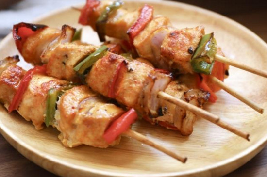 将鸡肉切成块状,放入适量的蛋液、玉米淀粉、耗油、酱油、红椒粉、蜂蜜、食盐以及胡椒粉等,腌制半个小时,洋葱、红椒以及青椒切块,撒上胡椒粉、植物油混合搅拌,在空气炸锅烤盘上涂一层油,预热5分钟时间,将腌制好的鸡肉与辣椒、洋葱串起来,烤12分钟即可食用。