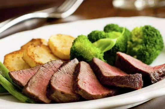 牛排放入锅中煎好,撒上适量的胡椒粉,将玉米粒、黄瓜丁以及胡萝卜丁混合放好,加入沙拉酱,搅拌均匀,西蓝花过沸水一次,摆盘完成后便能食用。