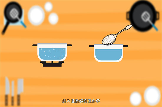 将西米放置清水中淘洗2~3遍,去除西米表面的污垢,注意不要将西米长时间浸泡,否则营养物质容易流失,西米清洗完成后可烧上一锅水,调至急火将水烧开。