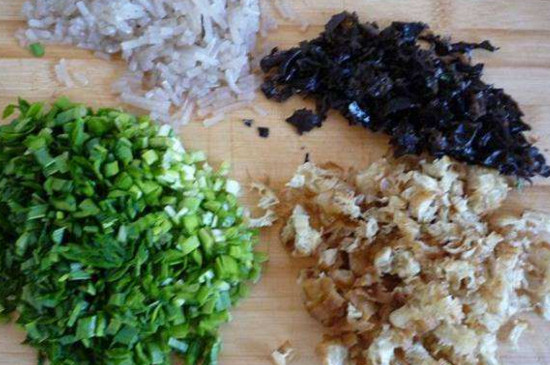 韭菜鸡蛋馅还可以加木耳,木耳脆爽,颜色鲜艳,能使韭菜鸡蛋馅口感更好,还能使馅料的色彩鲜亮。粉丝较为Q弹,具有吸水的功效,可以缓解韭菜出水的问题。虾皮中含有丰富的虾青素,具有抗氧化的作用,也能使馅料口感较好。