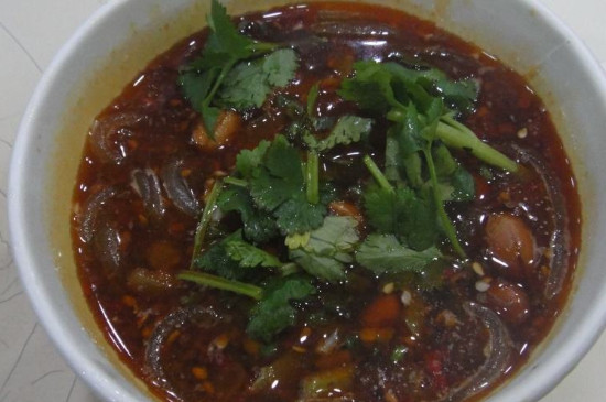 酸辣粉的调料主要有油芹菜、香菜、葱、蒜泥、食用油、盐、花生、花椒、保宁醋等材料,制作酸辣粉需要先将花椒、葱、豆芽、大豆、辣椒油等材料