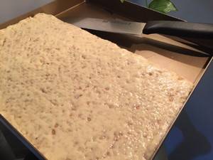 4、离火加入花生碎,放入烤盘,压实,放凉。