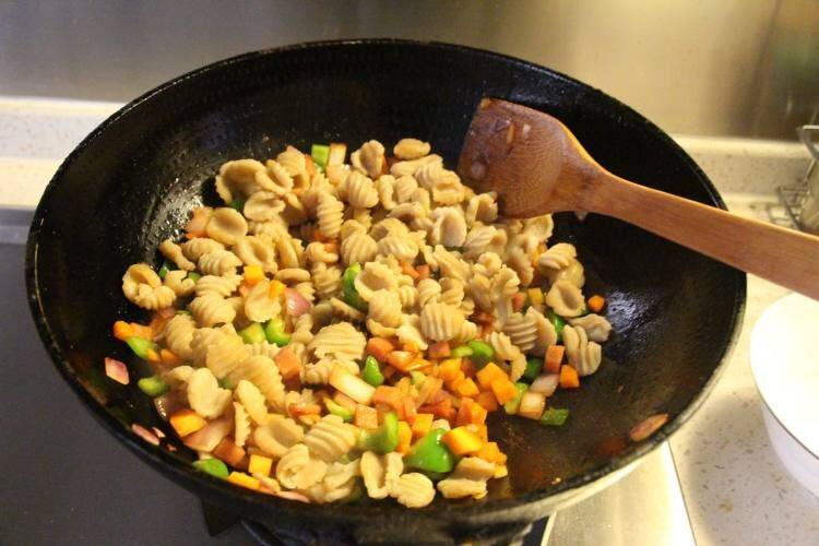 最佳答案:莜面中倒入热水,将面搅成絮状,和成面团。取一小块面剂子,在寿司帘上轻轻推成猫耳朵。在锅中蒸大约5~7分钟,蒸熟后放一边晾凉,晾凉的猫耳朵,用手撕开备用。洋葱、胡萝卜、青椒、火腿分别切成丁。锅中放入适量油,放入葱姜蒜末和五香粉爆香,然后放入菜丁煸炒。