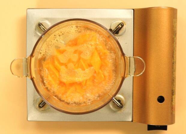 自制不加酒的香蕉酒需要先将香蕉外皮去掉,切成块状或直接打碎成泥状,装入发酵罐中,取适量冰糖以及少许清水放置锅中熬煮融化,倒入发酵罐中