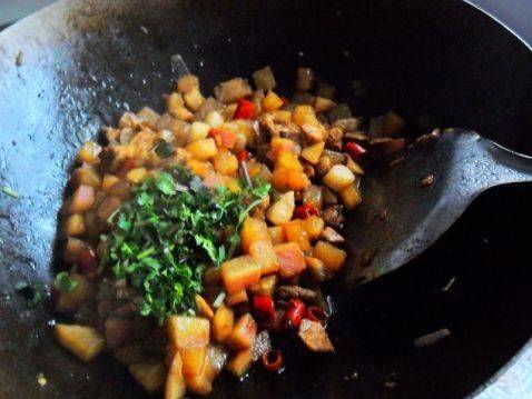 7、待萝卜熟后,加入适量香菜和味精即可出锅。