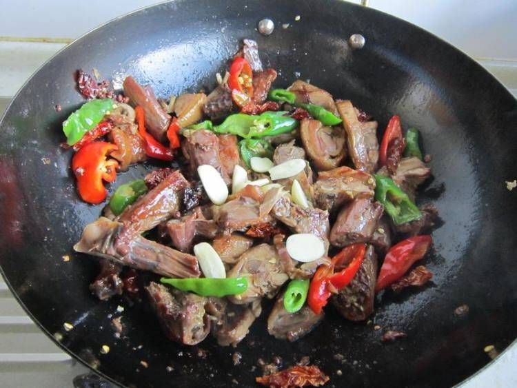最佳答案:食材准备:卤鸭、植物油、生抽、花椒粒、青红辣椒、辣皮子、生抽、大蒜。辣皮子洗净切段,青红辣椒洗净切斜段。大蒜去皮切片,卤鸭切块,热锅凉油,油热7成下辣皮子、花椒粒爆炒出香味。下卤鸭翻炒均匀,加少许水再次翻炒3分钟左右。加青红辣椒翻炒出香味(大约2分钟)。