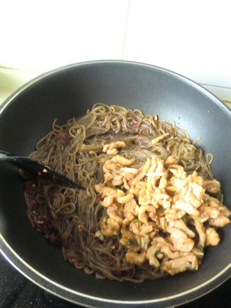 最佳答案:食材准备:鸡胸脯肉250克、红薯粉条100克、辣椒酱20克、生抽30毫升、白糖3克、料酒10毫升、醋3毫升。鸡肉切丝加入生抽、料酒、白糖、胡椒粉、淀粉抓拌均匀腌制片刻。红薯粉条泡软后开水煮制透明过凉备用。取一个小碗加入少许盐、15毫升生抽、3毫升醋、2克糖、少许鸡精。