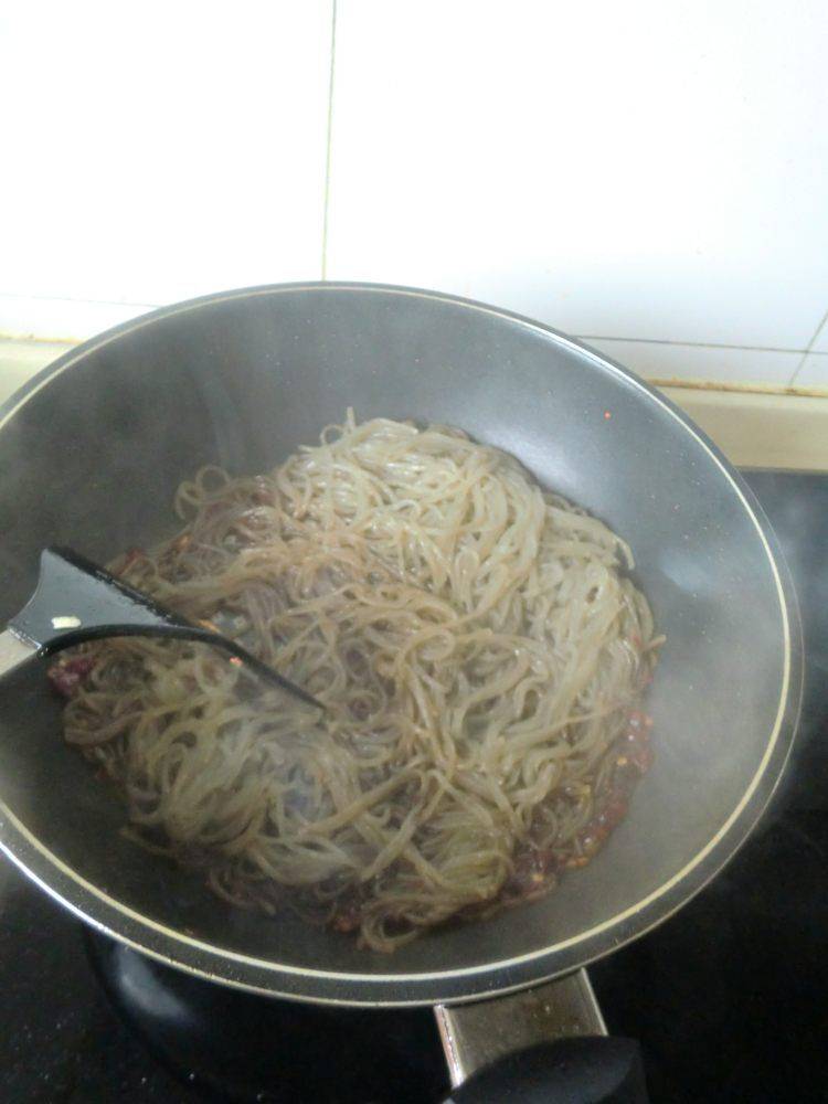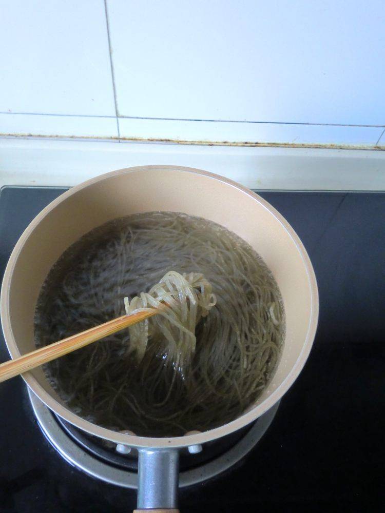 3、红薯粉条泡软后开水煮制透明过凉备用。