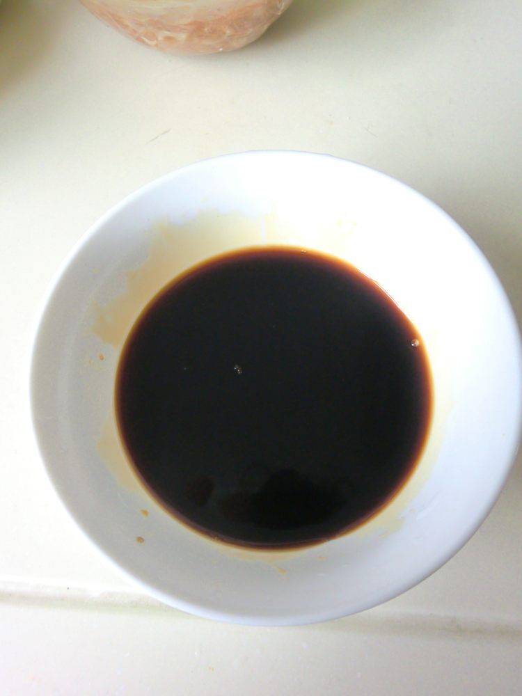 4、取一个小碗加入少许盐、15毫升生抽、3毫升醋、2克糖、少许鸡精和适量的清水调为料子备用。