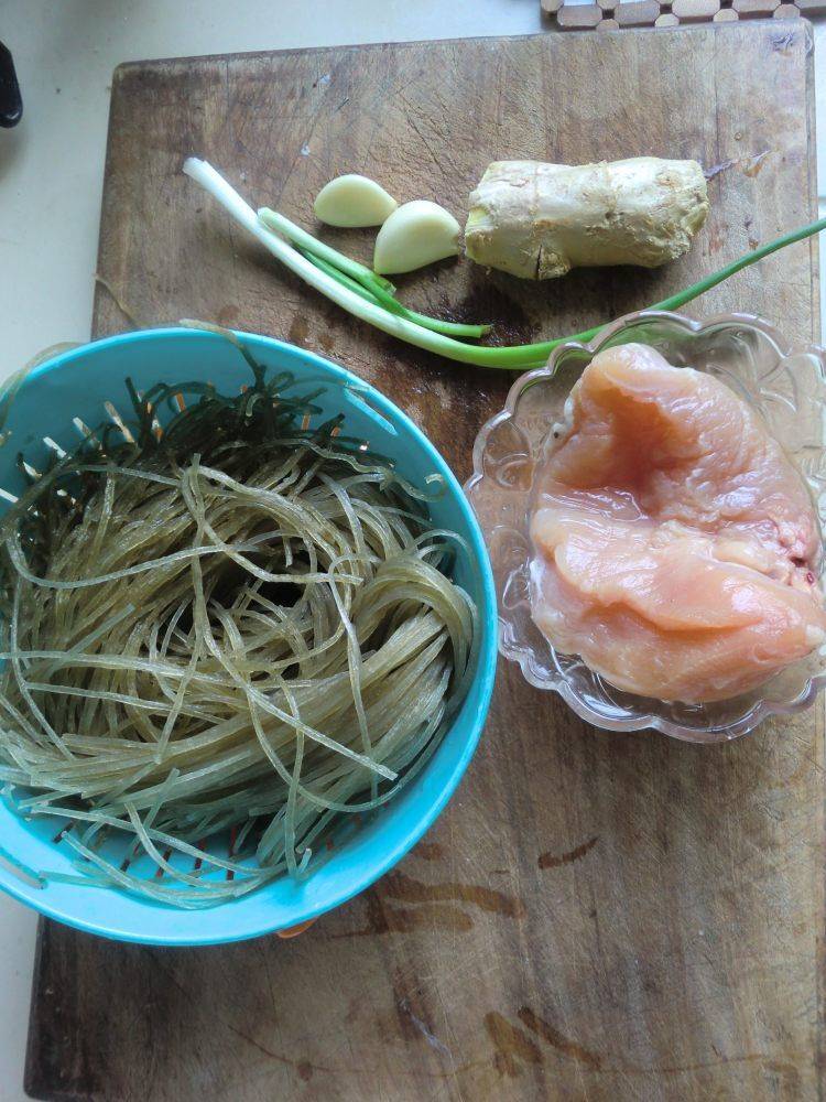 1、食材准备:鸡胸脯肉250克、红薯粉条100克、辣椒酱20克、生抽30毫升、白糖3克、料酒10毫升、醋3毫升。