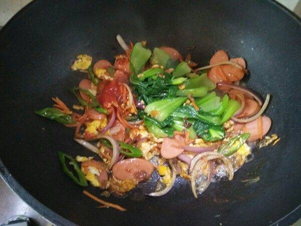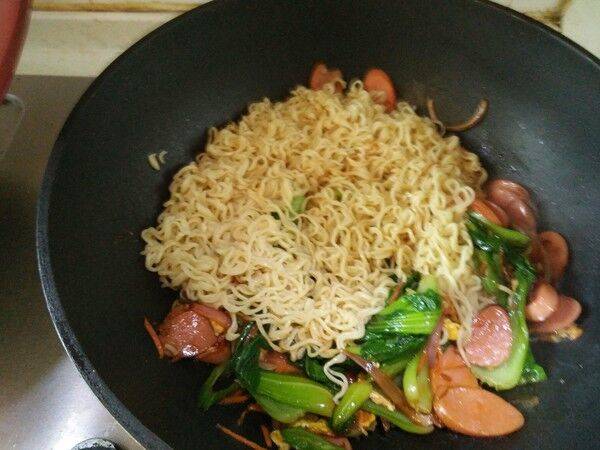 最佳答案:准备好配菜,胡萝卜切丝、洋葱切丝、杭椒切片、火腿肠切片。锅中水烧开,加少许盐,油菜烫一分钟,捞出过凉水。方便面下锅煮,煮至面散开,捞出过凉水。起油锅放鸡蛋炒散。加配菜炒匀,加酱油、番茄酱、花椒油多放一点,继续炒匀。